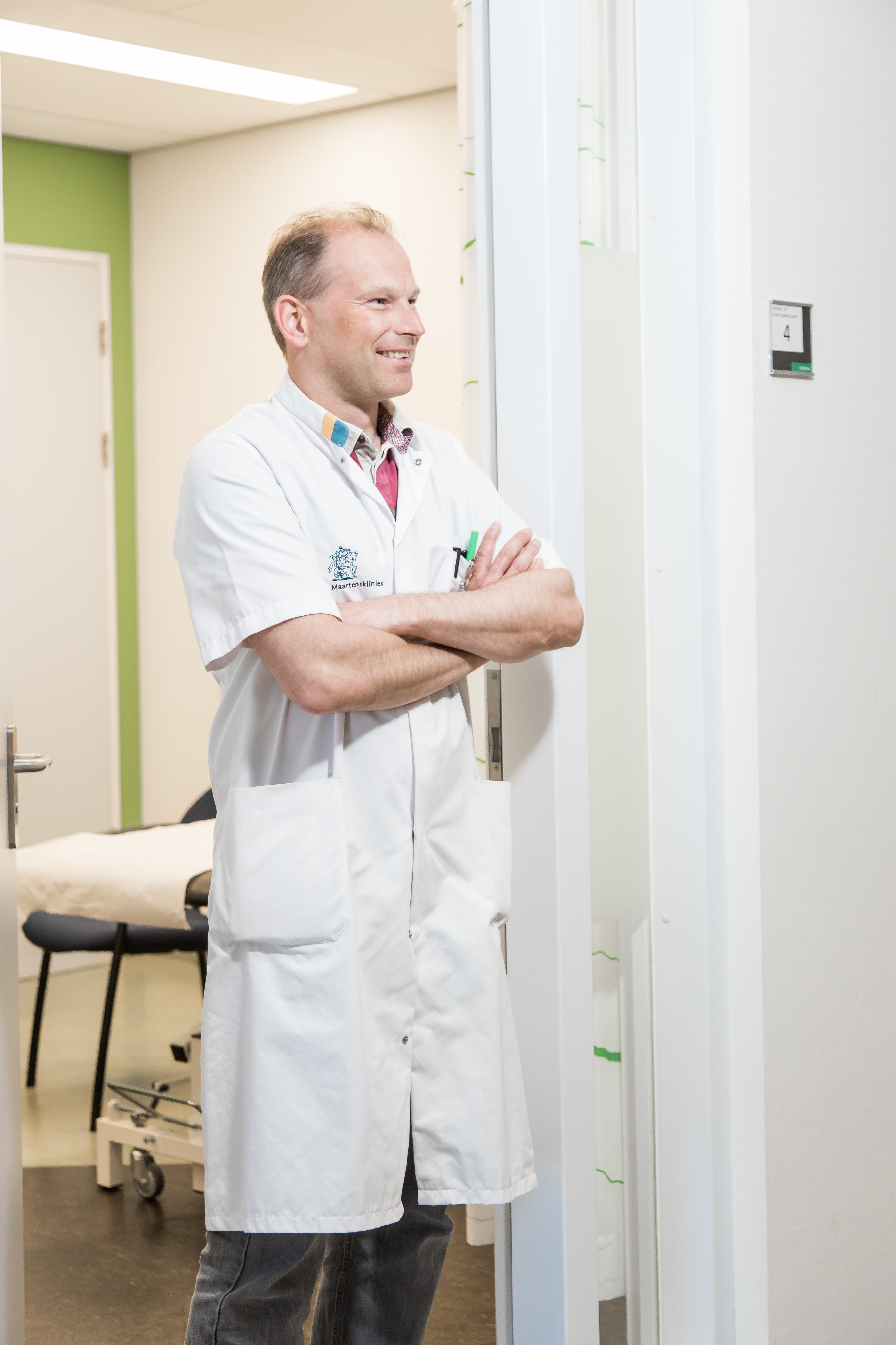 “Als ik in de Sint Maartenskliniek rondloop, schieten allerlei mensen mij steeds aan. Ze hebben me goed leren kennen de afgelopen jaren. Ik heb door Cerebrale Parese een spastische spier in mijn rechterbeen die niet goed meegroeide met de andere spieren. Om die scheefgroei te herstellen, heeft dokter Arno eerst mijn heup rechtgezet. Daarna volgende nog enkele ingrepen, zoals aan mijn knie. Die operatie is terug te zien in het televisieprogramma TopDoks. Ik vond het belangrijk om te laten zien wat zo’n operatie en de revalidatie erna inhouden.”